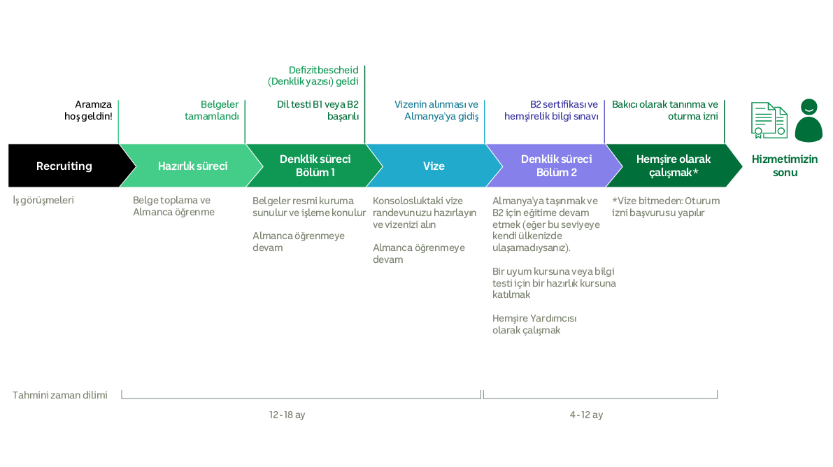 Size sadece bir işe yerleştirme hizmeti değil, çok daha fazlasını sunuyoruz. Bütünsel yaklaşımımızla, bilgi akışı, seçenekler, dil eğitimi, mesleki dil ve hemşirelik becerileri sınavları, vize başvurusu, denklik işlemleri, konaklama yeri, anaokulundan sürekli eğitimler organize etmeye kadar tüm süreçle ilgileniyoruz.
